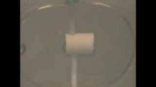 This clip is a real-time video of a cylindrical artificial kidney stone being treated with burst wave lithotripsy. The stone is made from gypsum cement, and has properties similar to a natural stone. The ultrasound is focused onto the stone from the left-hand side. In this trial, the entire stone was broken into a series of fragments over 9.3 minutes.