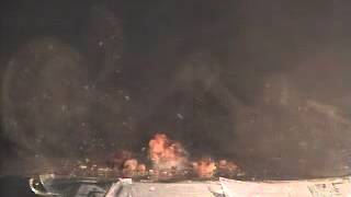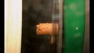 Real-time video of a natural struvite stone exposed to burst wave lithotripsy in a water bath. The ultrasound is focused onto the stone from the left-hand side. The entire stone is reduced to a series of fragments smaller than 3 mm in 5 seconds.